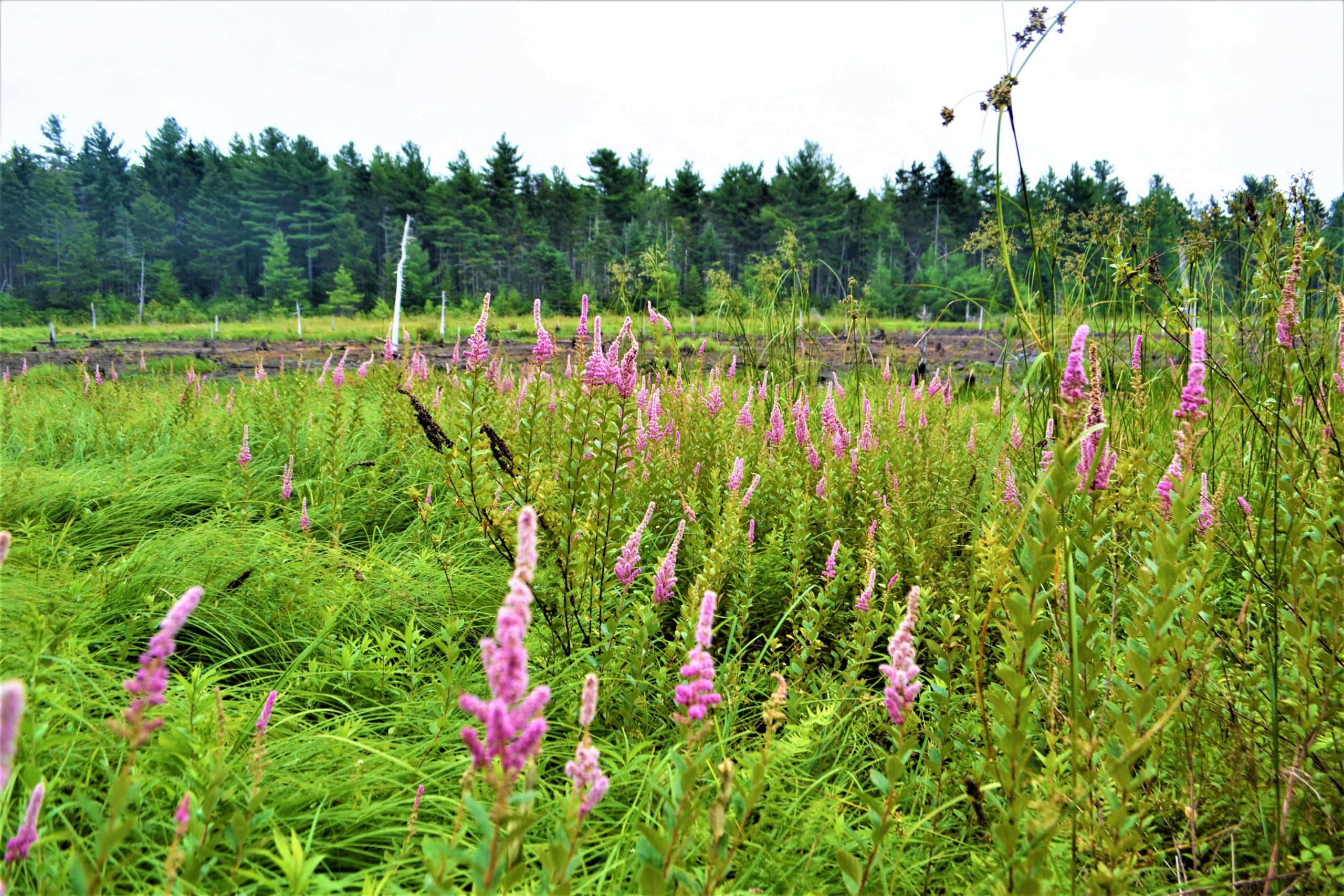 This 43 acre property includes a stone wall lined field along The Shore Road/Route 166, adjacent to the parking area and the woods beyond. A walking trail begins at the wood’s edge and continues to the back of the property (roughly 0.5 miles). The trail ends at the edge of a beaver flowage. The trail goes through a variety of soft, hard and mixed woods with interesting ground cover, and crosses two seasonal small streams. A number of trees along the trail are well over a hundred years old.