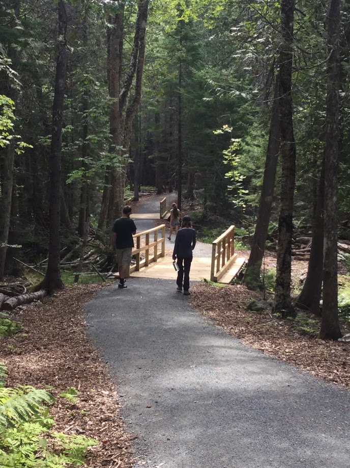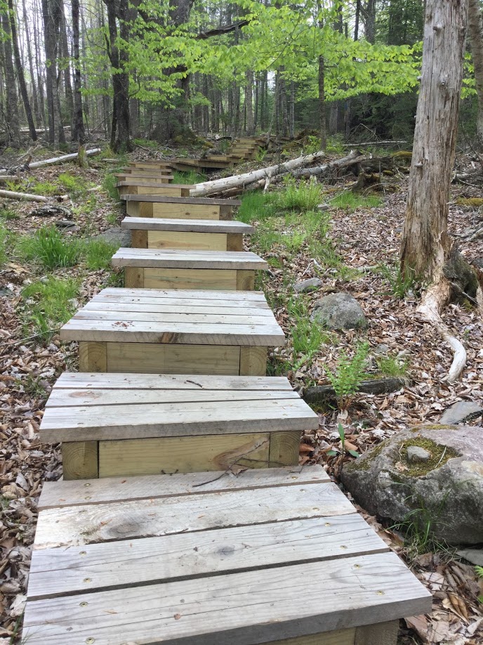 This trail system is designed for accessibility and to provide a pleasant way to travel through Blue Hill Village on foot while getting off the busy roads. The Murphy Trail is a lovely wooded path with crushed gravel, perfect for a stroll through the woods and suitable for strollers or those with limited mobility. The Kaiser trail connects the Murphy Trail with our Parker Point to South Street Trail and is a typical wooded trail. The Parker Point to South Street Trail has been improved and now includes several new bridges, gravel-covered paths, and a long staircase up the slope coming out in between Mainescape and the Blue Hill Coop.