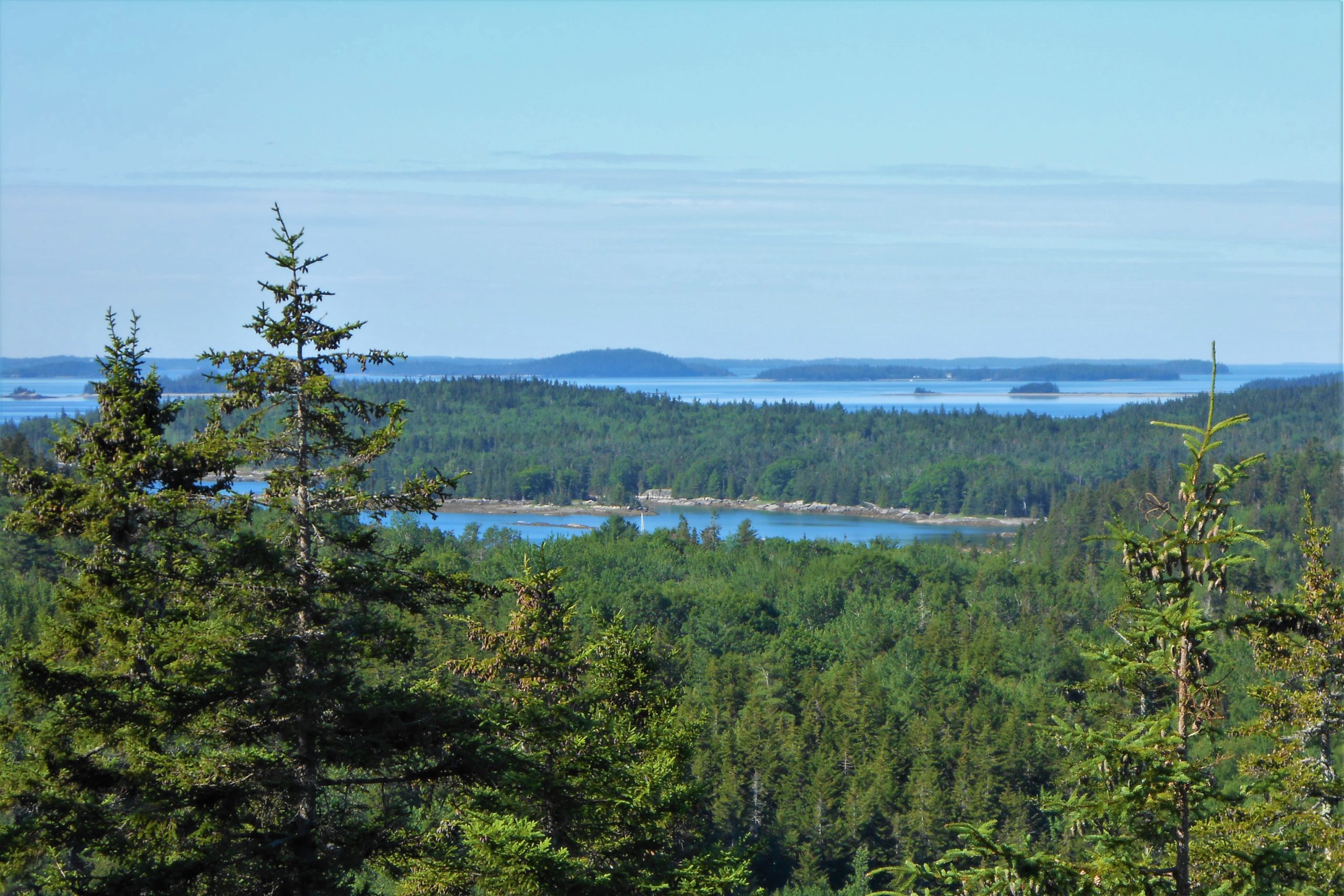 This 250′ mountain sits in the middle of 38 undeveloped acres along the edge of Eggemoggin Reach. A short loop trail takes you to the summit and past an old cemetery. The trail is steep and rocky in sections. A short spur trail heads down a broad and relatively level trail known as the “Old School House Road”. This trail ends at the conservation property line. Recently added is our newest Spur Trail to Long Cove, only 0.2 mi one way to a refreshing view of a tidal stream flowing into Horseshoe Cove.